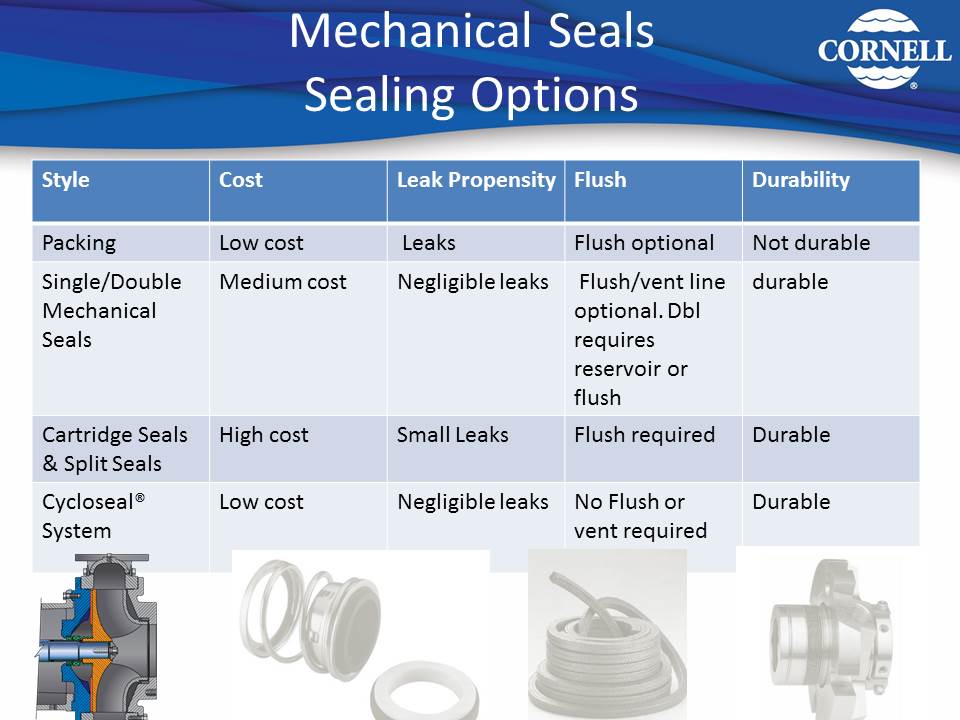 One method Cornell developed to assist with solids and abrasive applications is our patented Cycloseal® technology. Cornell’s “Run-Dry” System lubricates the mechanical seal and allows the pump to run without pumping liquid. Contact the factory for additional info on these sealing technologies.