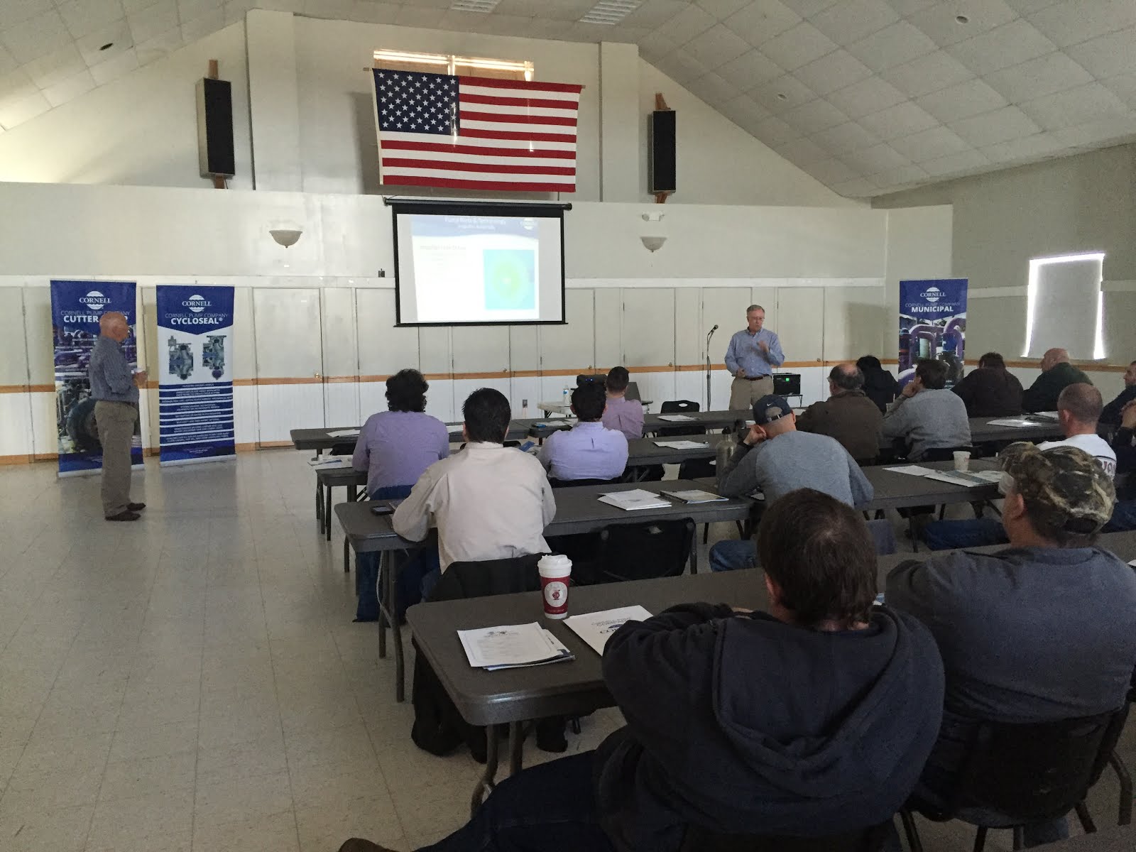 Ron Aceto, Cornell municipal market manager and Ray Bahr, Blake Equipment VP of civil sales presenting in East Windsor CT.