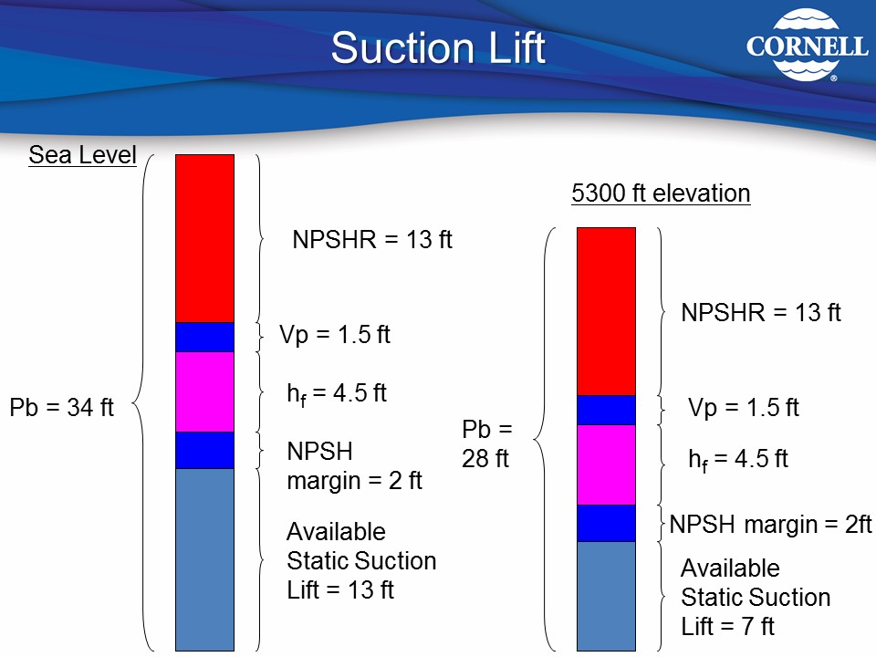 - Suction Lift = P(b) – (Ls + Vp + hf + NPSHR)